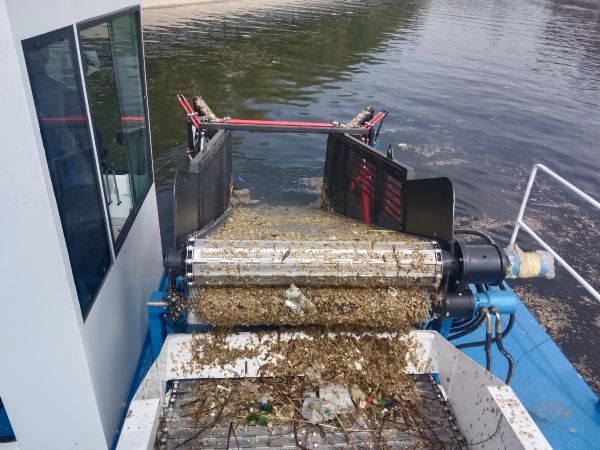 電話:15610293649小葉浮萍割草船在蒙古現(xiàn)場 水葫蘆收割打撈設備 湖面保潔船 小型割草船 保潔船廠家 保潔船是一種適用于小型湖泊、河道、人工湖等城市園林景區(qū)的現(xiàn)代化設備