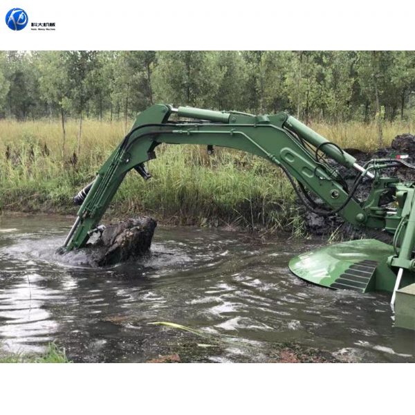 水王挖泥船在江蘇現(xiàn)場 兩棲式挖泥船設(shè)計緊湊,集反鏟疏浚作業(yè)、絞吸疏浚作業(yè)、打樁作業(yè)能力于一身。適于在超淺水域、河湖、渠道、池塘及工業(yè)沉淀池進(jìn)行工作