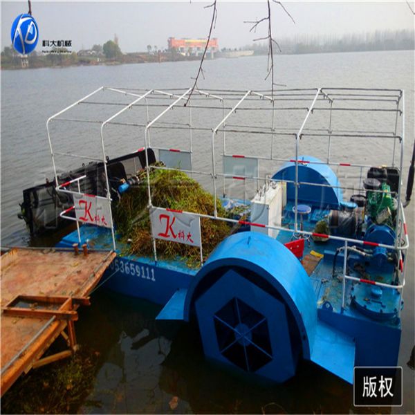水草收割船,操作方便簡單,對漂浮垃圾的收集動作只需在駕駛室內通過控制臺上的按鈕就能輕松控制,收集臂與前、中、后集物艙配合默契,且連續作業的工作穩定; 船舶采用臥艙式驅動,艉軸有高精--密的水潤滑密封裝置,作業過程中不會產生任何油污泄露,發動機噪音低,排放達到歐Ⅱ標準,完全符合0要求。
